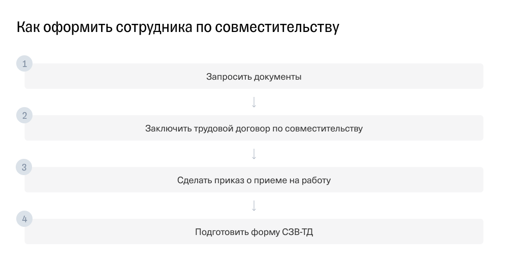 Краткая инструкция для оформления сотрудника по совместительству — на схеме.