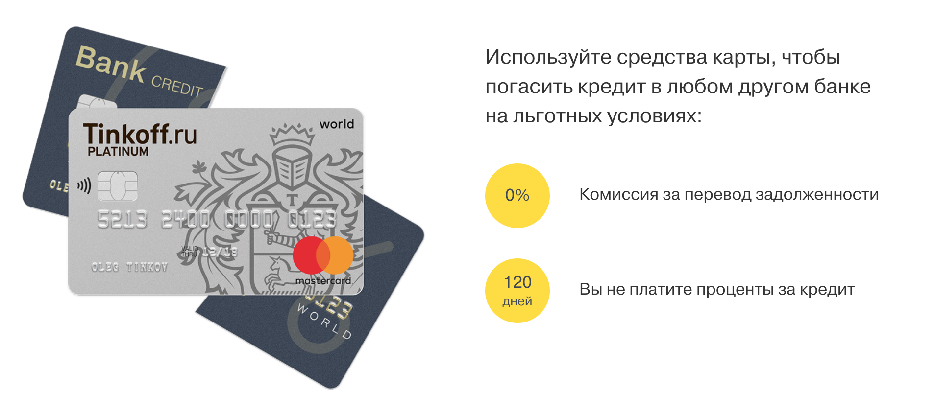 Некоторые банки, в том числе и Тинькофф, периодически проводят акции по увеличению льготного периода до 100−120 дней. Условия акции просты. Для увеличения беспроцентного периода необходимо погасить долг по карте в другом банке.
