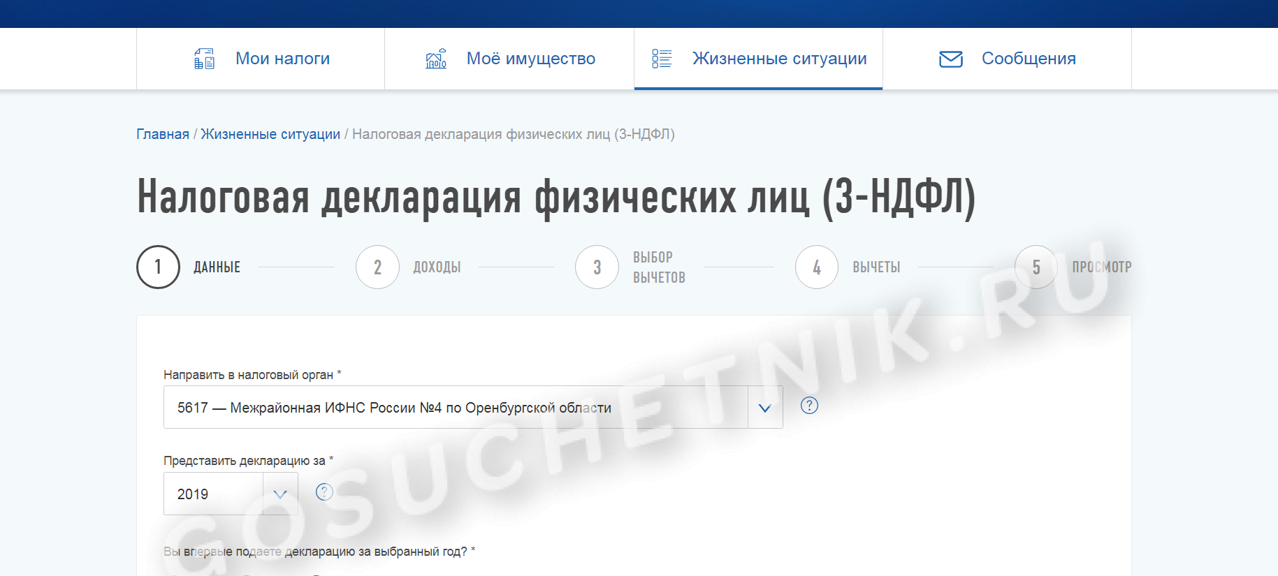 Предлагаем пошаговый алгоритм, где можно бесплатно заполнить 3-НДФЛ для физических лиц в электронной форме — на официальном сайте ФНС через личный кабинет налогоплательщика.