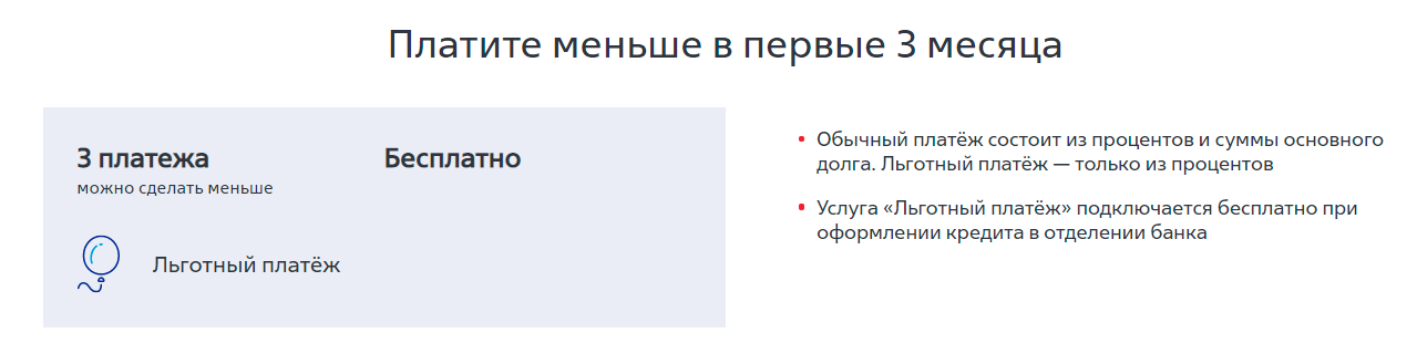 Банк оставляет за клиентом право отложить три первых платежа по кредиту.