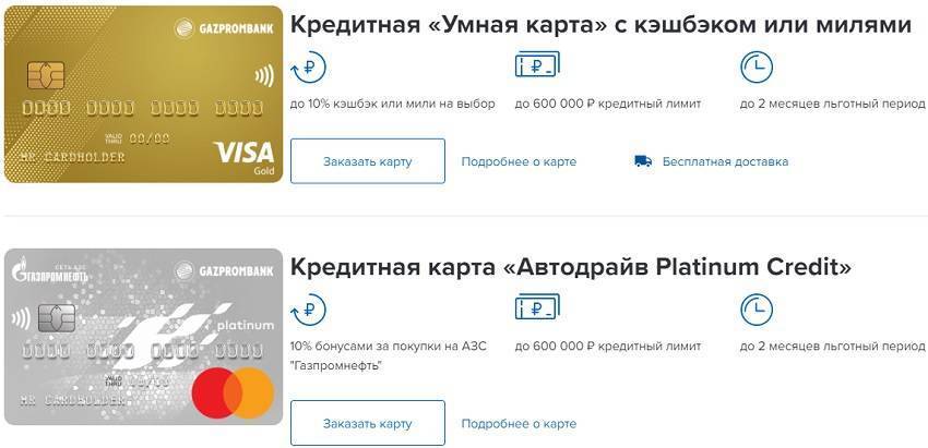 Специально для зарплатных клиентов Газпромбанк разработал две международные кредитные карты. Финансовая организация предлагает кредитки платежных систем Visa, MasterCard, JCB и UnionPay. В банке вы бесплатно можете заказать основную карту и дополнительную, с гибкой системой начисления бонусов.