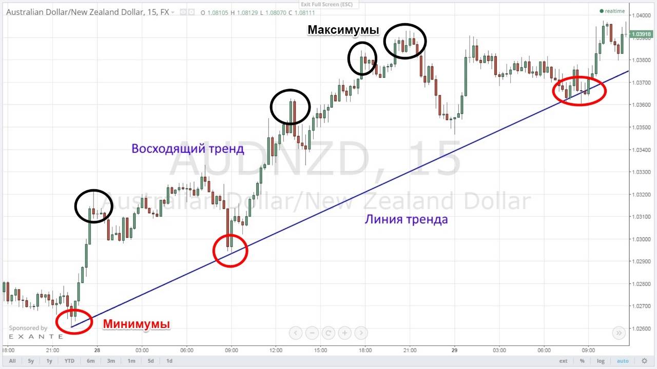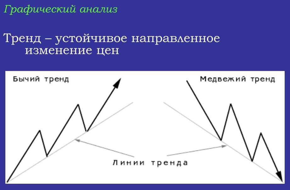 Основное понятие технического анализа: тренд (направление движения цены). Он бывает трёх видов: