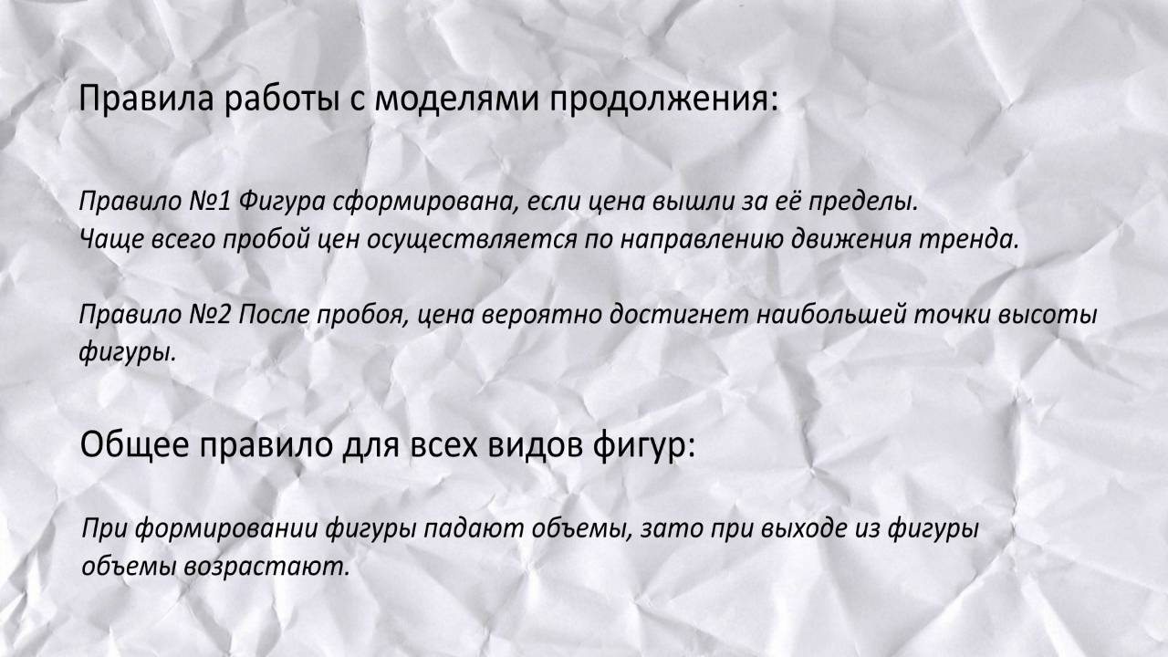 Модели продолжения – это менее субъективные относительно моделей разворота фигуры, образование которых на графике означает вероятное продолжение тренда.
