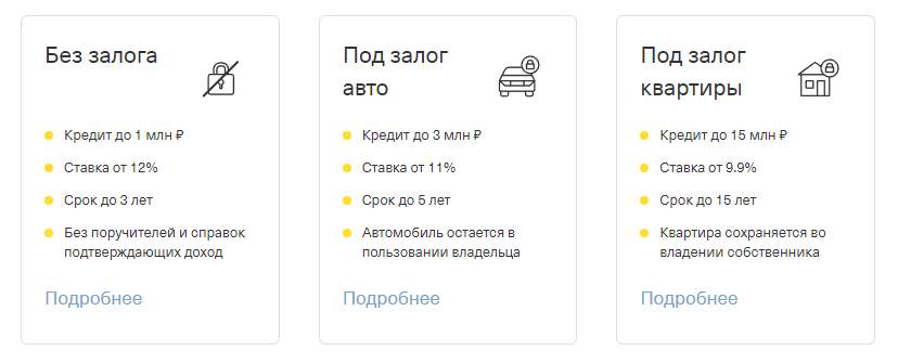 - В рамках данной программы кредитования заемщик может взять ссуду без обеспечения, под залог транспортного средства или же недвижимости.