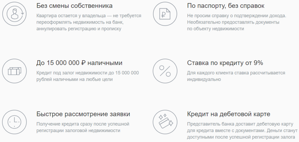 Если вам необходимо получить максимально возможную сумму, нужно оформить заявление, предоставив как залог вашу квартиру. Вы можете пользоваться своей собственностью на протяжении всего срока погашения долга. Помимо этого, для выдачи крупной суммы учитывается кредитная история заемщика в других банках и фактор своевременности выплат в прошлом.