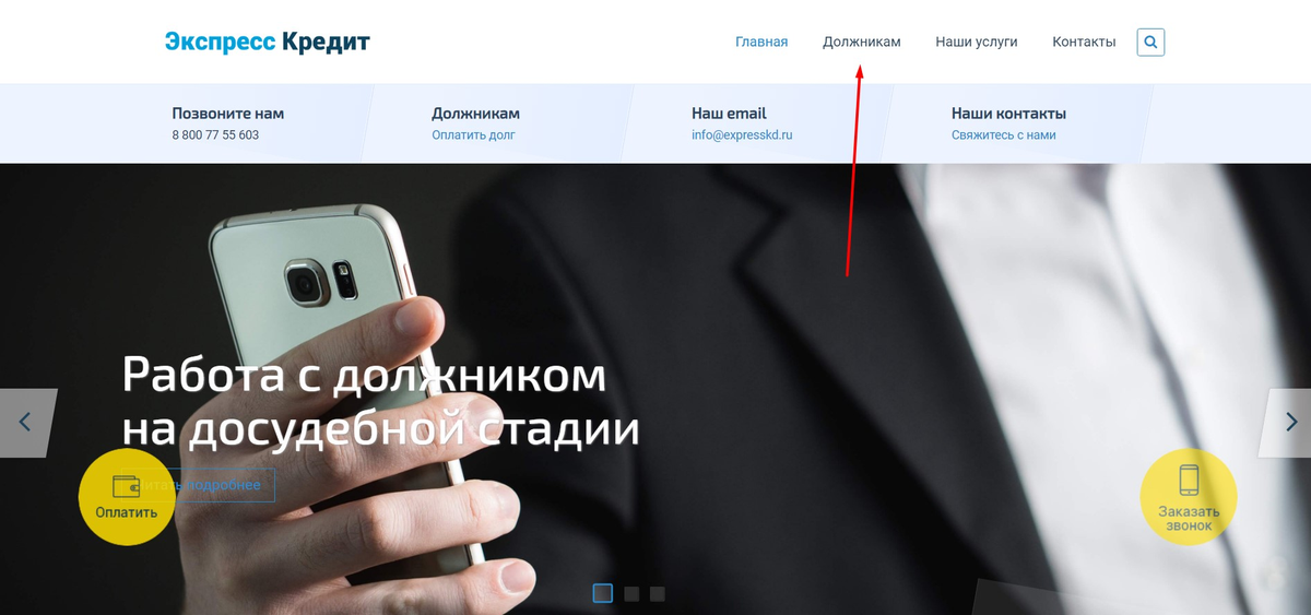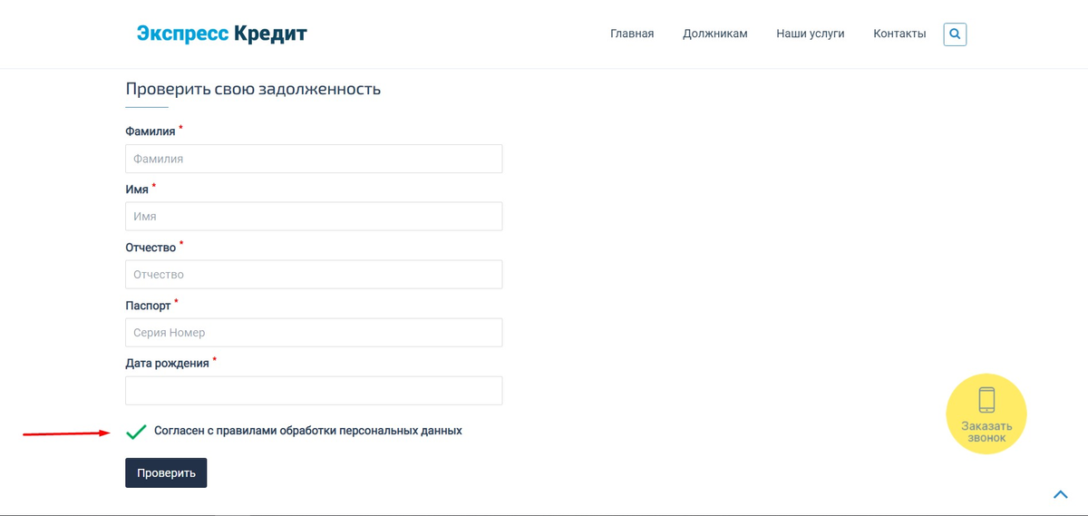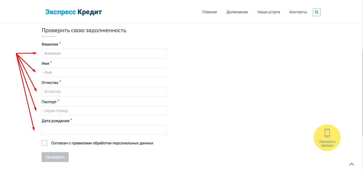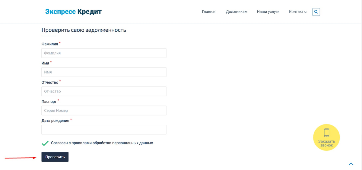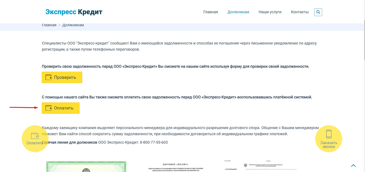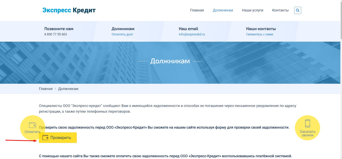 Кроме того, на сайте Экспресс-Кредита также есть возможность проверить задолженность. Для этого: