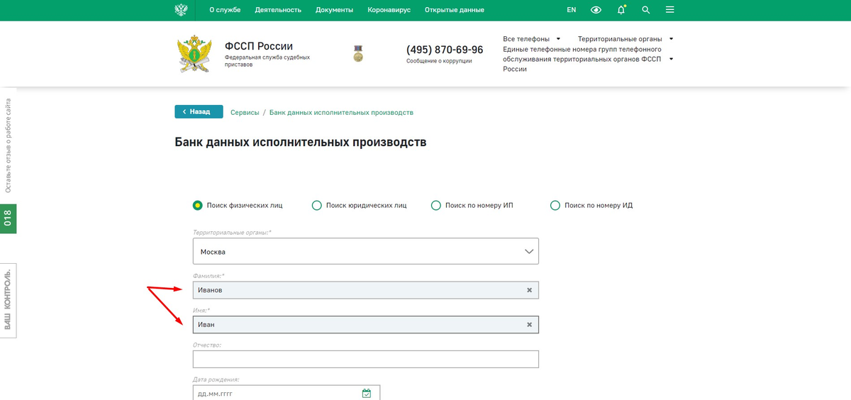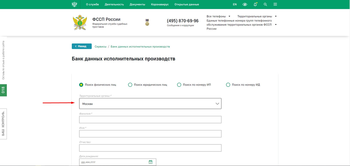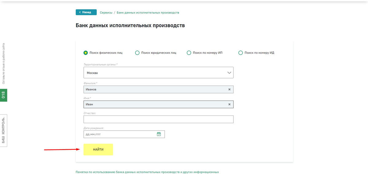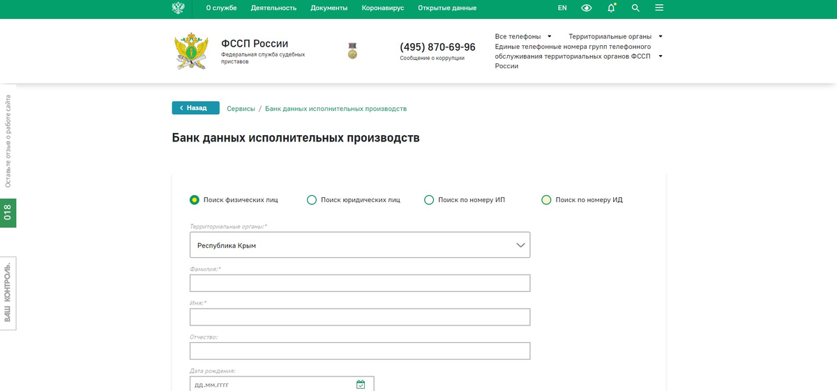 - Ссылка на сайт ФССП: https://fssp.gov.ru/
