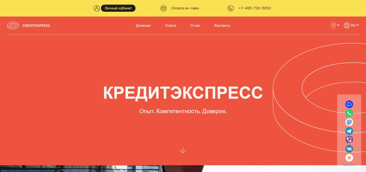 - Перейдите на сайт ООО «КЭФ»: https://www.creditexpress.ru/.