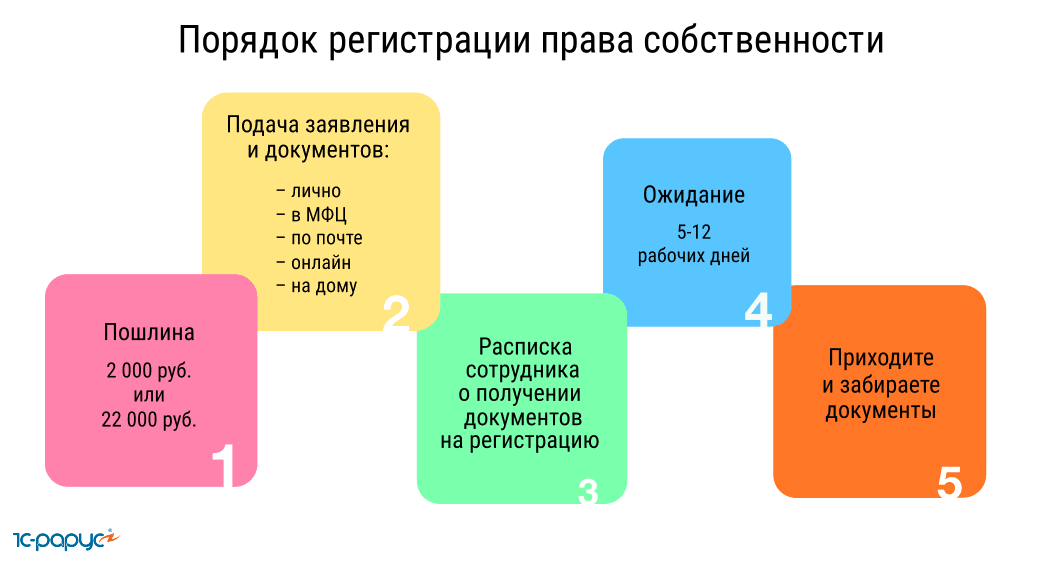 Оплатите госпошлину до подачи документов: 2 000 рублей для физического лица; 22 000 рублей – для юридического лица; 200 рублей – при регистрации доли в праве общей собственности на квартиру.