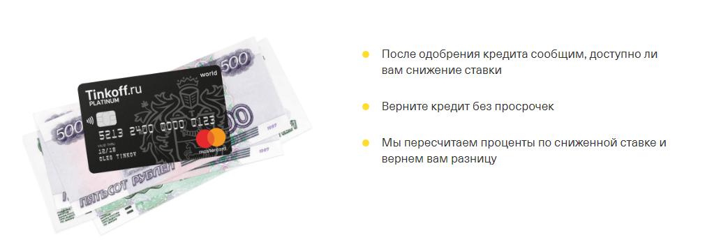 Согласно этому предложению, человек, который выплатил кредит без задержек и просрочек, получает перерасчет кредитной ставки. Полная сумма займа, который он брал, пересчитывается по новой сниженному проценту. Разница, которую переплатил человек, возвращается к нему.