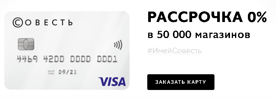 Для обретения карты потребуются паспорт, интернет, мобильный телефон или ноутбук. Оформление рассрочки можно произвести на официальном сайте банка. Процедура занимает около получаса, после чего клиент в течение нескольких дней должен получить «Совесть» с доставкой на дом.