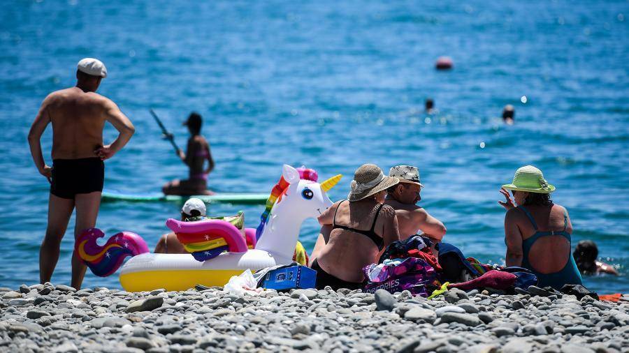 Туристы отдыхают на пляже в Сочи