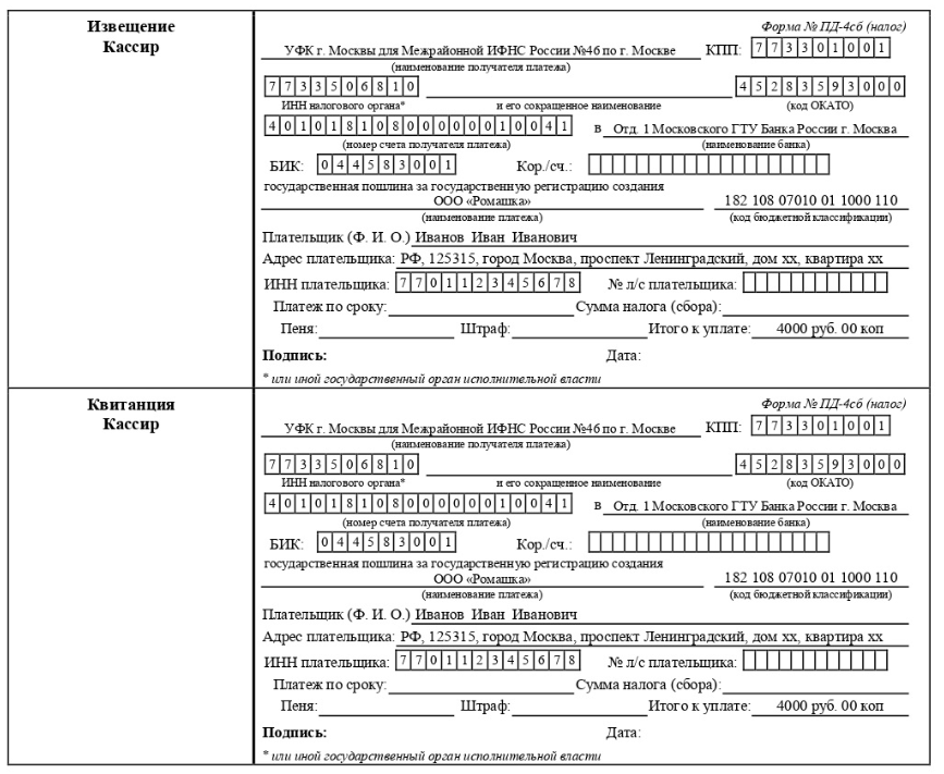 Пример заполненной квитанции на уплату госпошлины. Она служит подтверждением уплаты