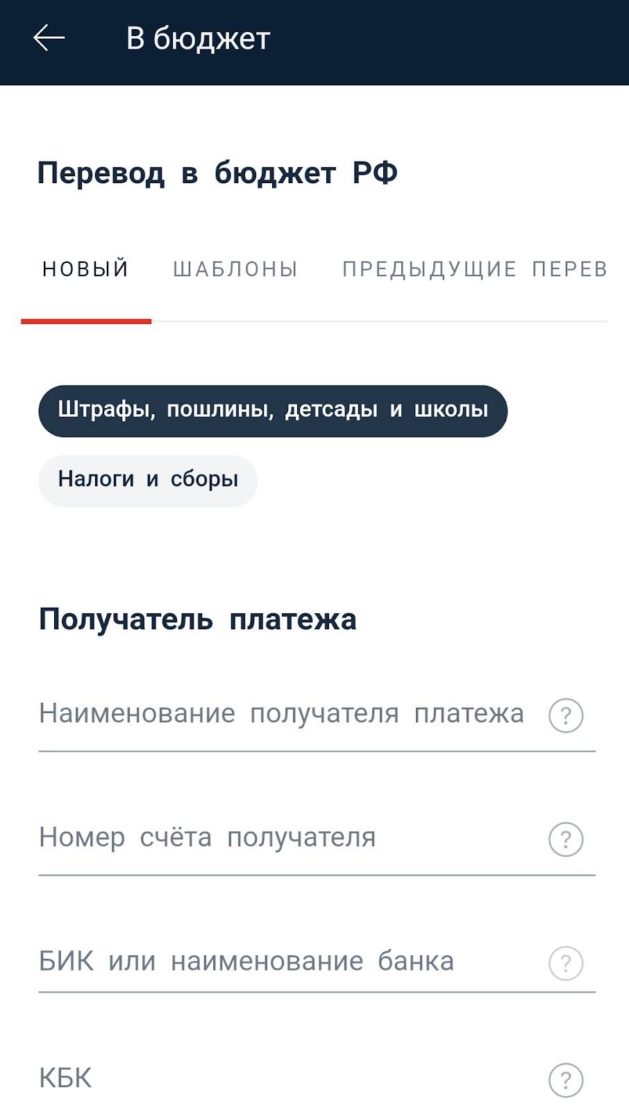 Чаще всего воспользоваться этой услугой можно в разделе «Платежи». Следующем пунктом меню может стать «Госуслуги» или «В бюджет». Вам нужен раздел с оплатой сборов, налогов и пошлин. Все реквизиты нужно будет ввести вручную или отсканировать QR-код уже сформированной квитанции.
