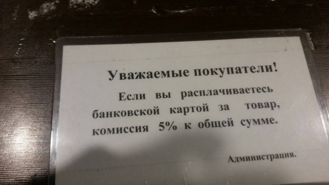 Предупреждение покупателей магазина об увеличении оплаты при использовании карты. Фото pg21.ru