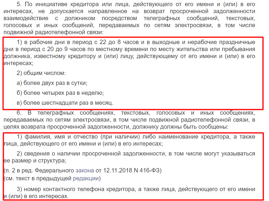 | Звонках в ночное время суток | Это означает, что они должны звонить только с 6 утра до 10 вечера, в противном случае можно привлечь к административной ответственности |