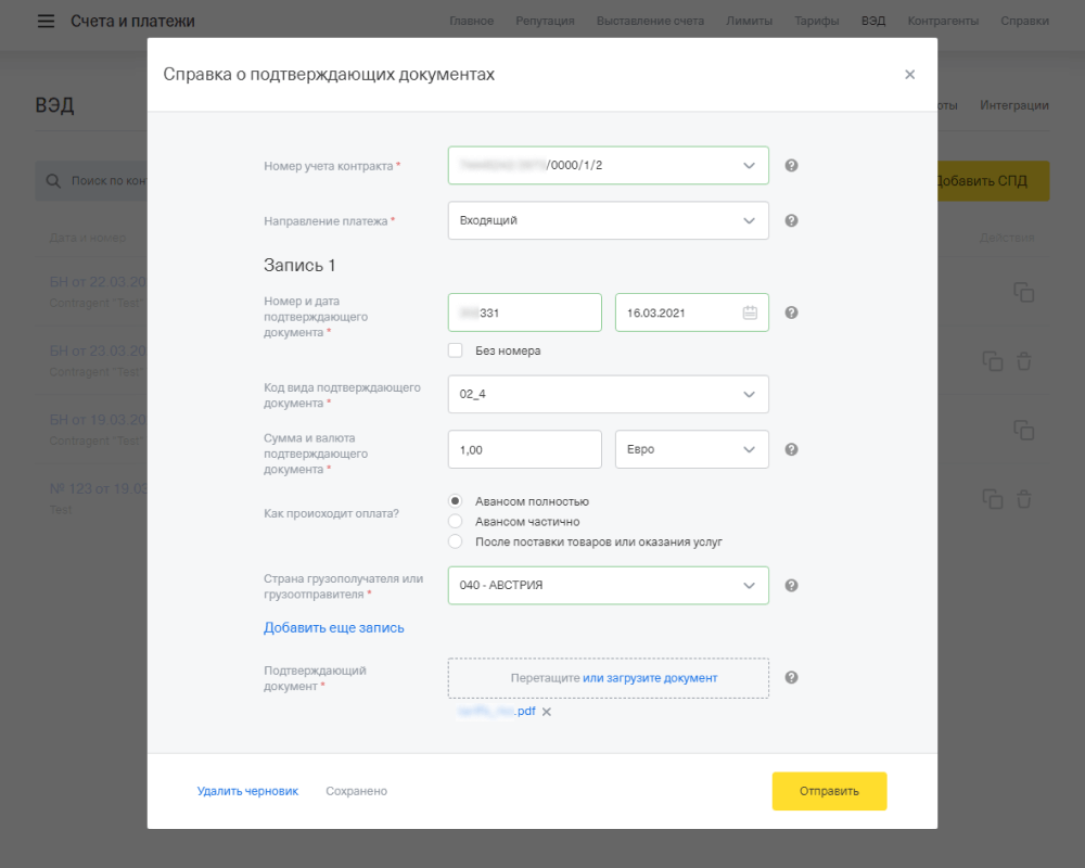 | От 3 000 000 ₽ | Импортный | Да. Кроме документов по контракту нужна справка о подтверждающих документах | Да |