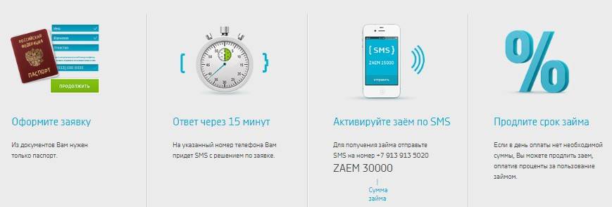 - если заявка будет одобрена, на номер телефона заемщика придет СМС-сообщение, указывающее одобренную сумму, а после этого в течение суток деньги будут переведены клиенту любым выбранным способом;