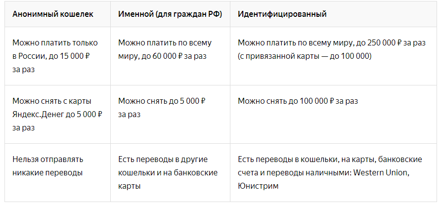 - используя именной кошелек, за операцию пользователь может перевести не более 15 тыс. руб. и не больше 200 тысяч за месяц;