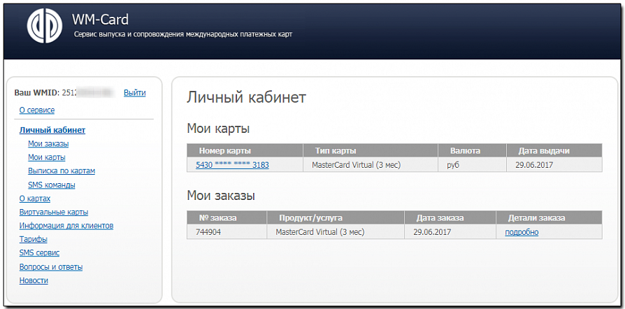Владеть можно только одной MasterCard Virtual. Все карты клиента отображаются в категории «Мои карты» сервиса WM-card.