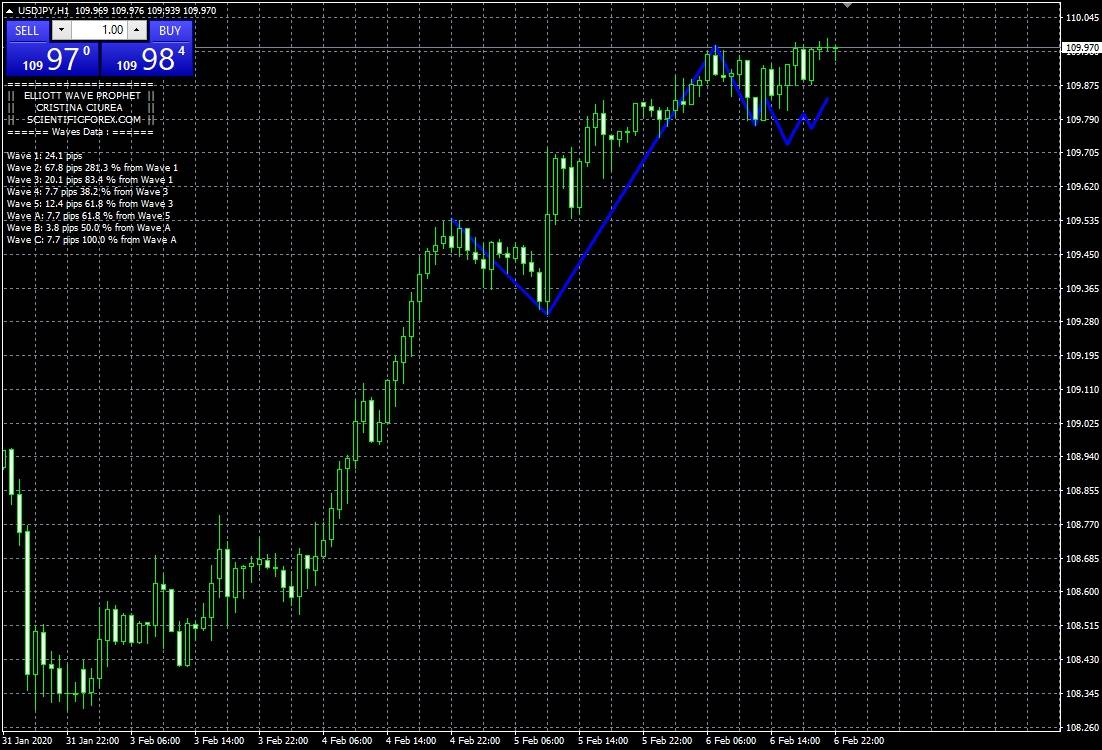 Ещё один индикатор волн Эллиотта, который способен наглядно их отображать на графике. Помимо отображения трендов на разных таймфреймах, трейдеру будет даваться прогноз по дальнейшим ценовым направлениям. Это более профессиональный индикатор, позволяющий на совершенно другом уровне проводить теханализ.