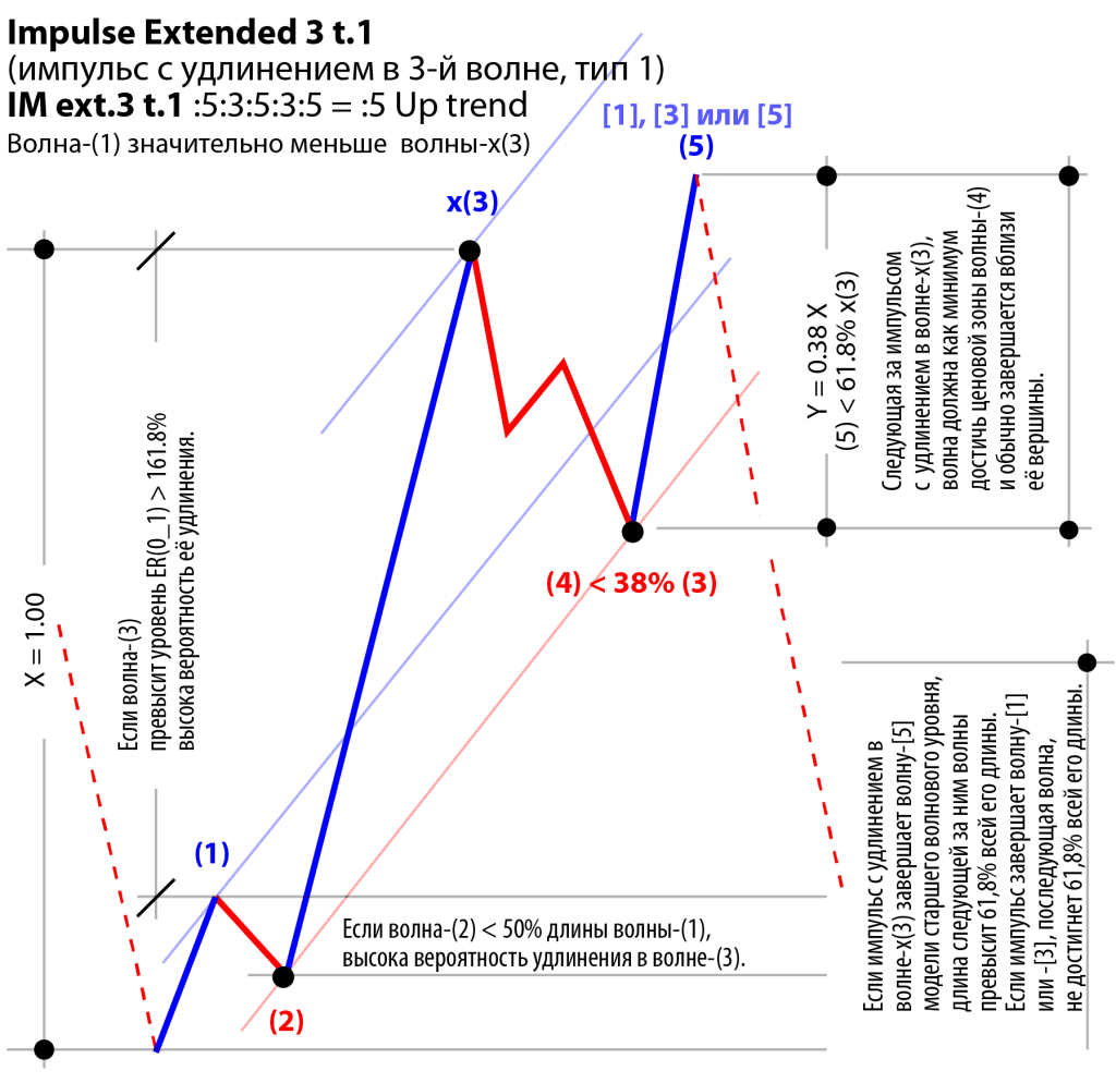 Эти волны могут быть удлиненными или усеченными. Удлиненный импульс – это модель, построенная с нарушением стандартных пропорций, установленных «Правилами Эллиота».