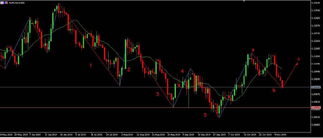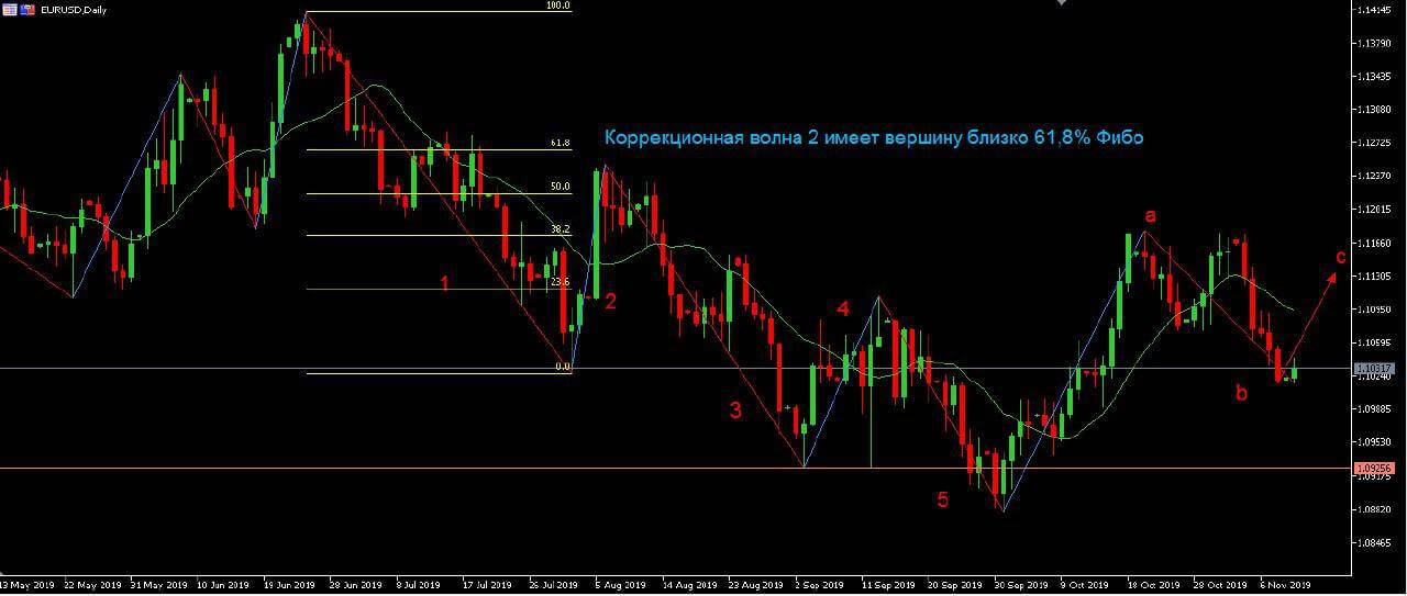Волны Эллиотта на графике валютной пары EURUSD, D