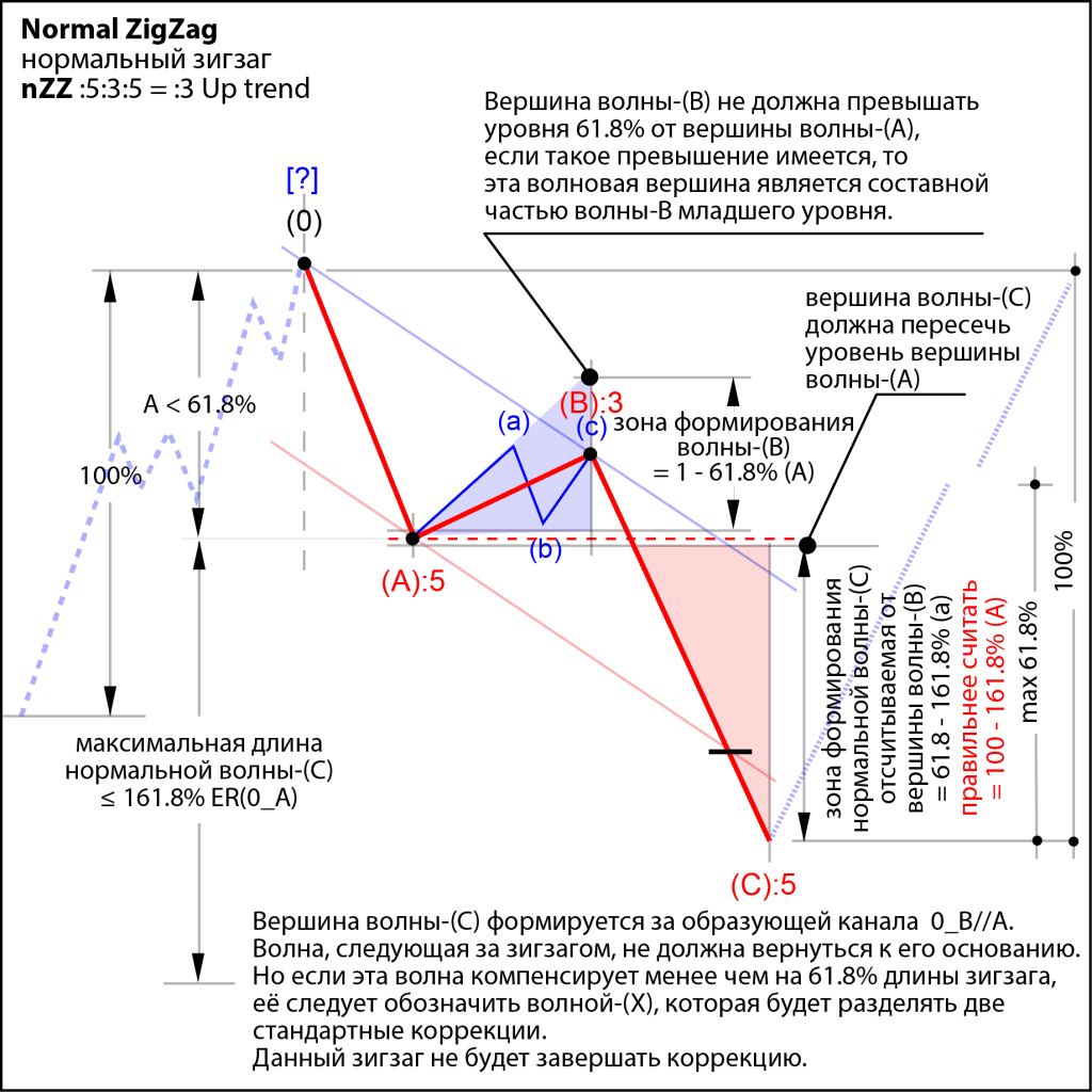 - А и С становятся коррекционными восходящими, а В – коррекционной нисходящей.