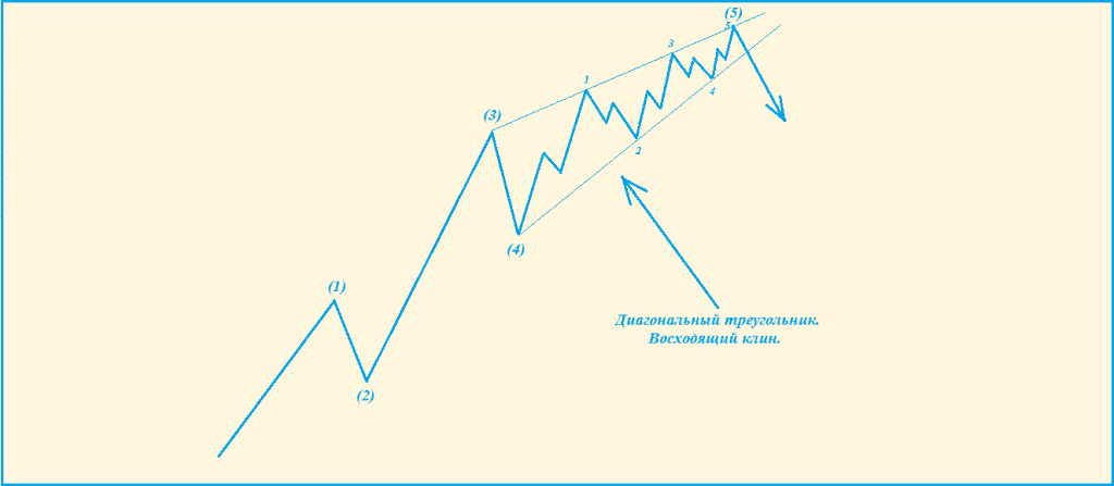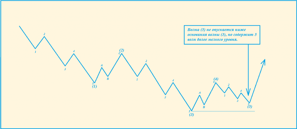 - Вершина волны 5 – выше вершины волны 3, волна 5 меньше волны 3;