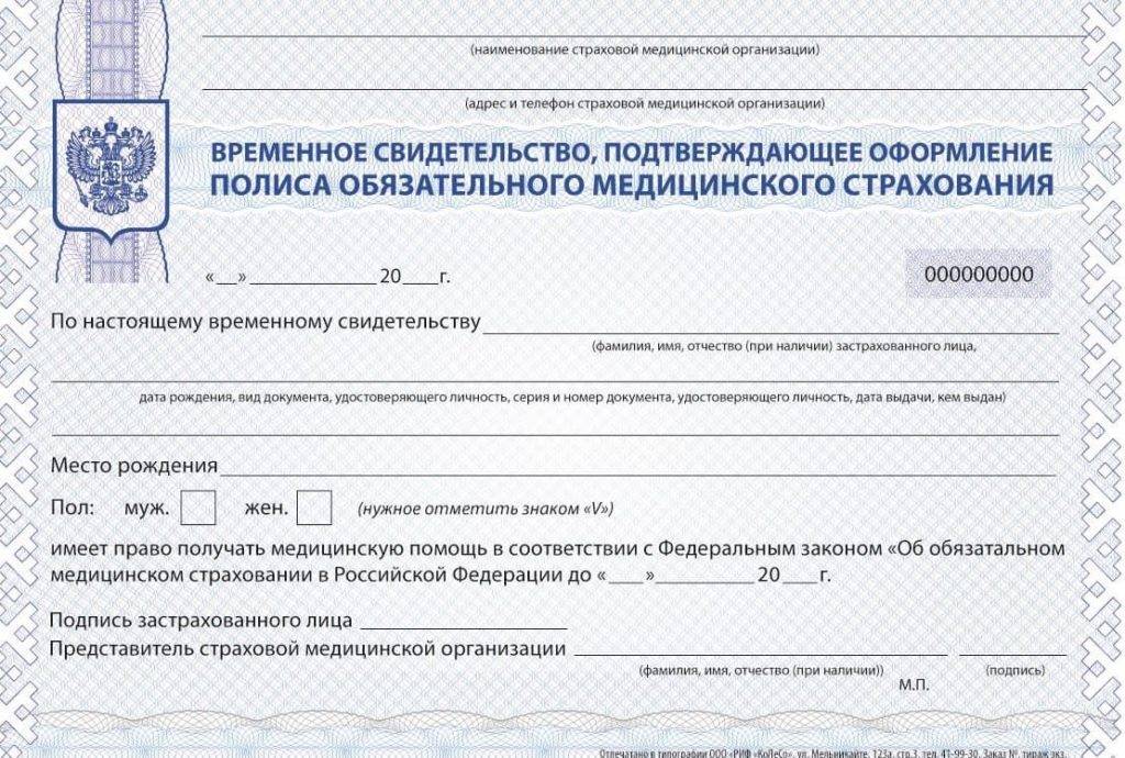 Как выглядит временное свидетельство, подтверждающее ОМС
