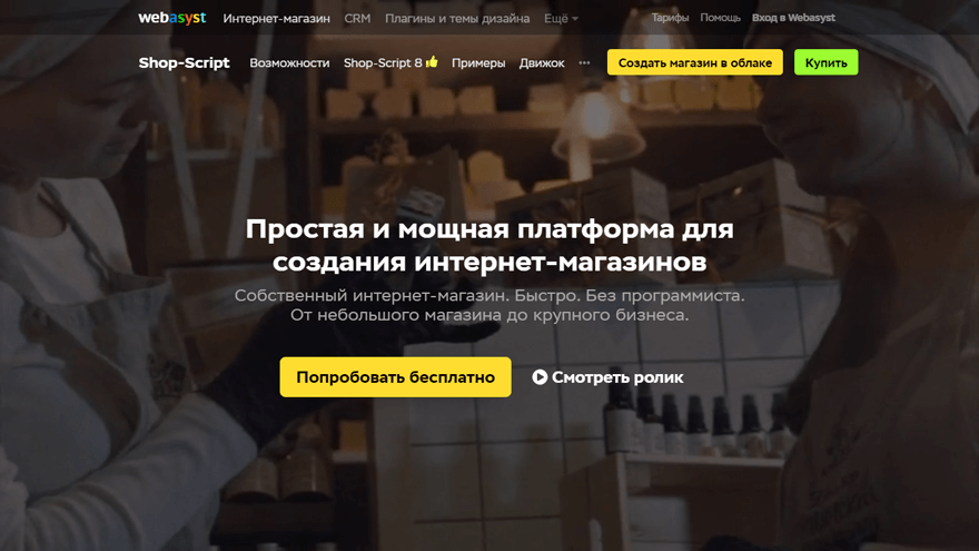 Shop-Script – движок от конструктора Webasyst, который предлагает размещение сайта на облачном хостинге или покупку лицензии для создания магазина на собственном сервере. Это платное решение, поэтому для работы понадобится достаточно серьёзный бюджет.