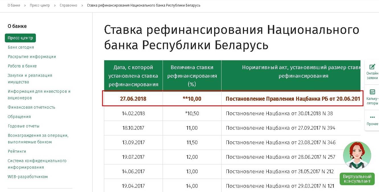 Инфляция и дефолт в Беларуси – гости довольно частые. Поэтому главный банк уже давно не опирается на твердую процентную ставку, ведущую его к потере доходов. Теперь размеры ежемесячного платежа меняются каждый квартал в соответствии с изменением ставки рефинансирования. На сегодня этот показатель составляет 10,5% годовых, поэтому и общая стоимость кредита нуждающимся в улучшении жилищных условий составляет 13,5%.