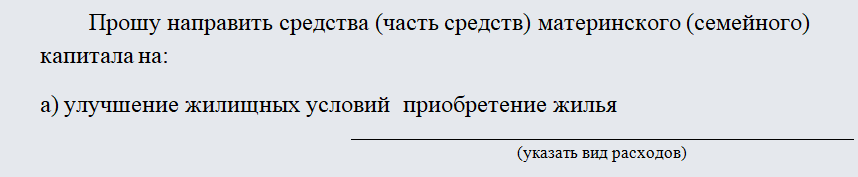 - В пункте 10 необходимо указать сведения о сертификате на маткапитал, а в 11 пункте — цель расходования средств;
