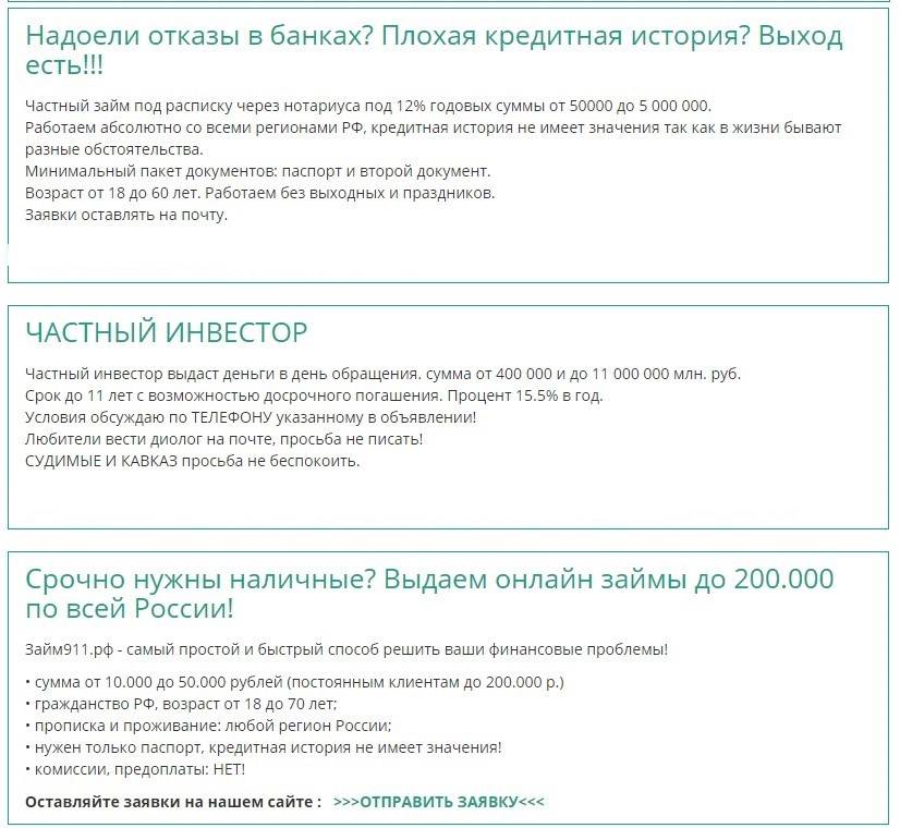 Малоизвестные микрофинансовые организации дают займ без отказа и без лишних проверок. Представители компании никогда не совершают обзвон родственников или бывших работодателей с целью проверки информации. Положительный ответ получают работающие и неработающие пенсионеры, даже в случае кредитной истории. Более того сотрудничество с МФО – способ создать хорошую КИ.
