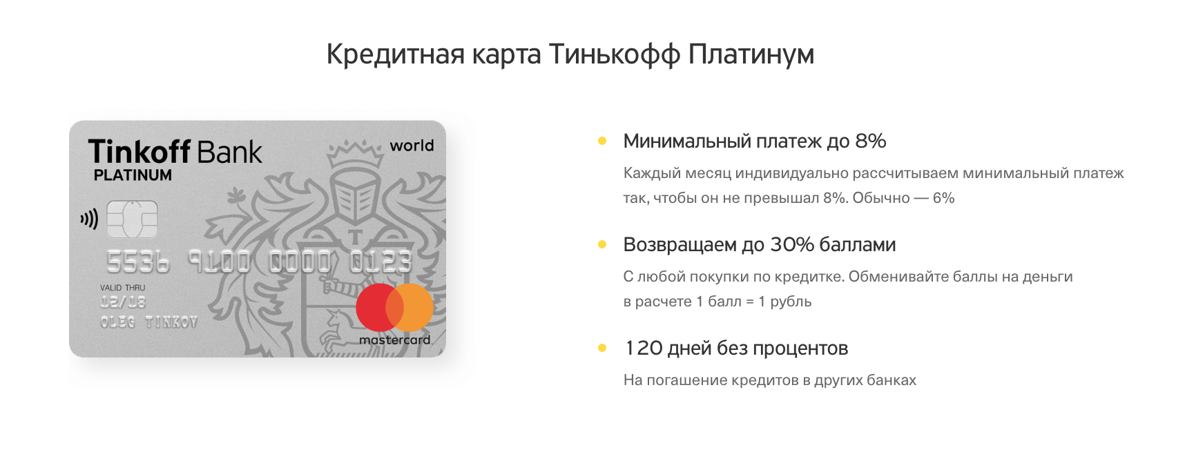 Условия кредитной карты «Платинум» от Тинькофф банка