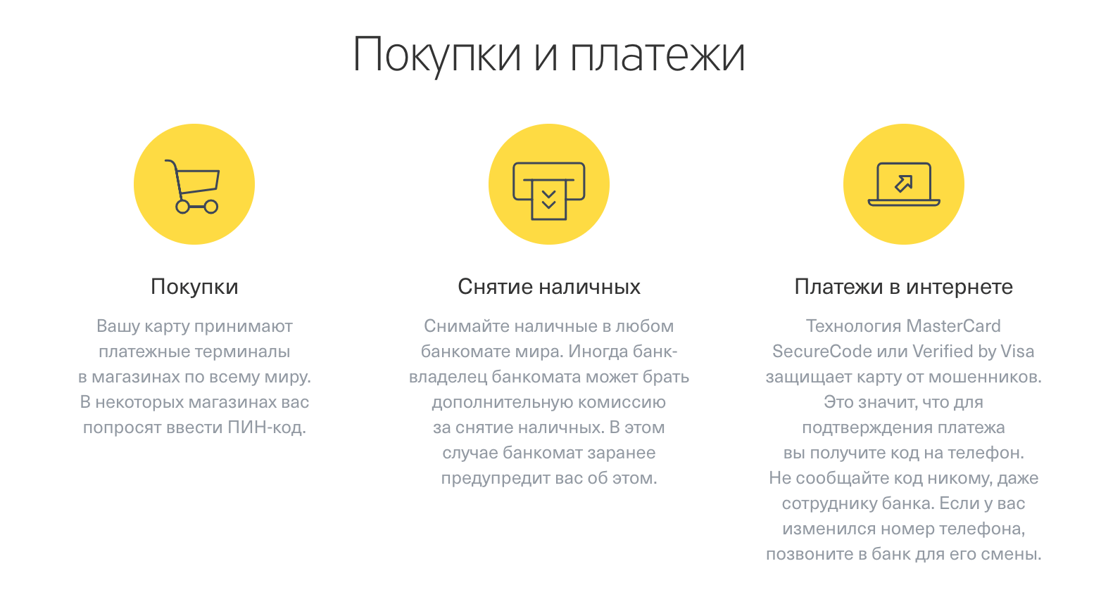 Условия по снятию наличных