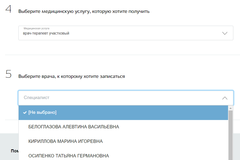 В некоторых регионах этот список дополнен и другими медиками «узких» специальностей. Наличие такой возможности по месту своего нахождения можно проверить в портале госуслуг, зайдя в раздел «запись к врачу», и выбрав перечень врачей специалистов.